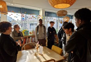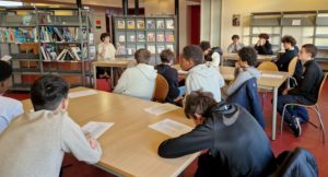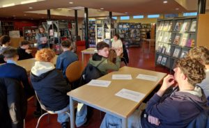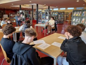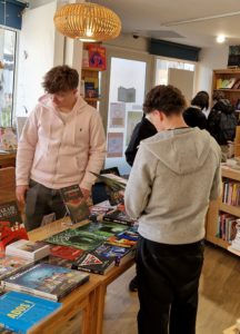 Rosalie Cave, libraire, leur a fait découvrir les lieux, leur a expliqué comment se repérer dans les différents espaces : livres pratiques, littérature contemporaine, documentaires, BD, mangas, livres pour enfants…