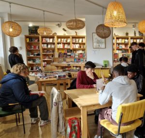 Dans le cadre du projet « Jeunes en librairie » proposé par Livre et lecture en Bretagne et financé par le Ministère de la Culture, les élèves de 2nde1 se sont rendus au café librairie Bojangles à Saint Brieuc les 10 et 17 mars 2026, accompagnés de Mme Pirault (professeure Lettres Histoire) et de Mme Mevel (professeure-documentaliste).